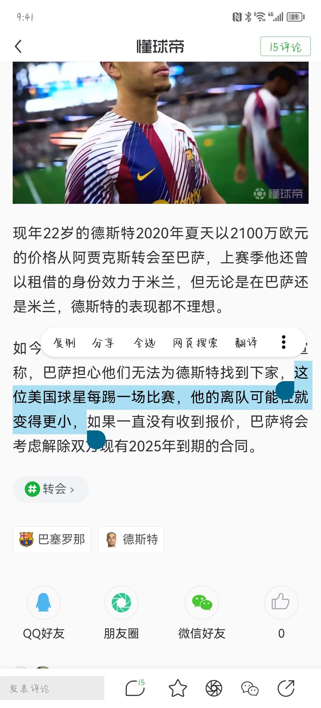 扫描下载懂球帝首页>动态> 记者:如果没有球队报价德斯特,巴萨可能会和球员解约