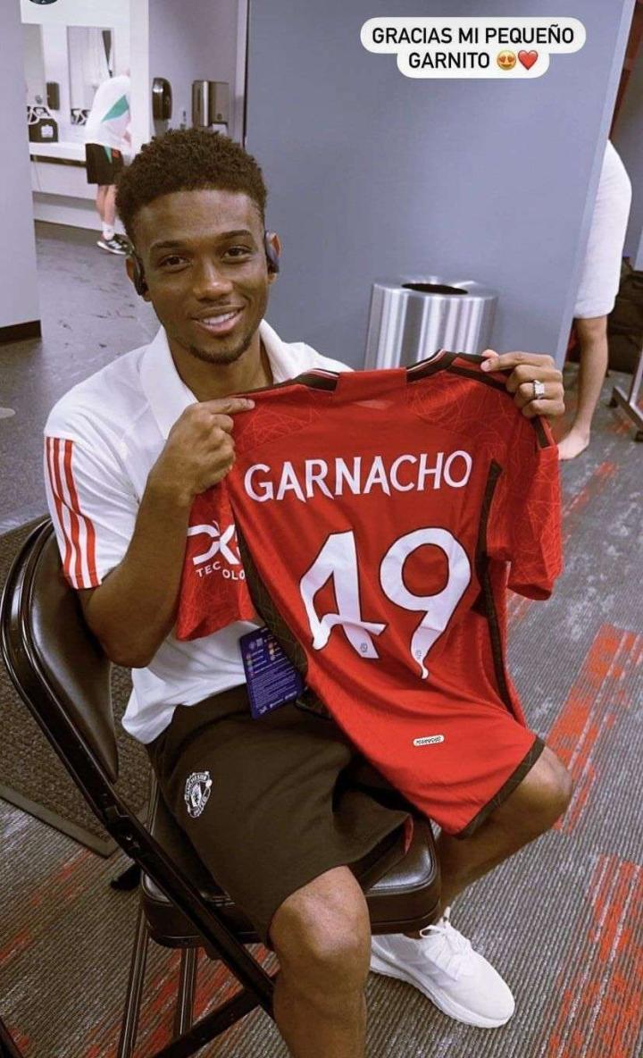 扫描下载懂球帝首页>动态> 懂球号> 小将阿马德・迪亚洛在INS上晒出加纳乔的球衣,并...