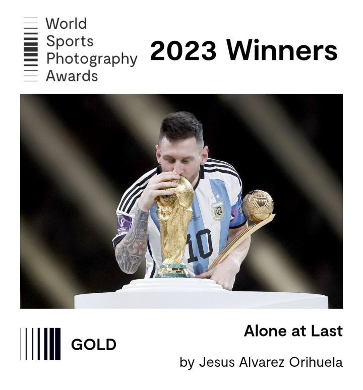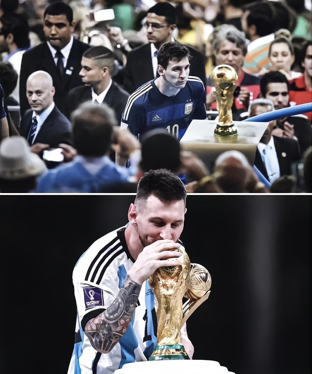 八年前梅西望向大力神杯的照片获奖,八年后梅西轻吻大力神杯的照片获奖,也许冥冥之中真的有天意