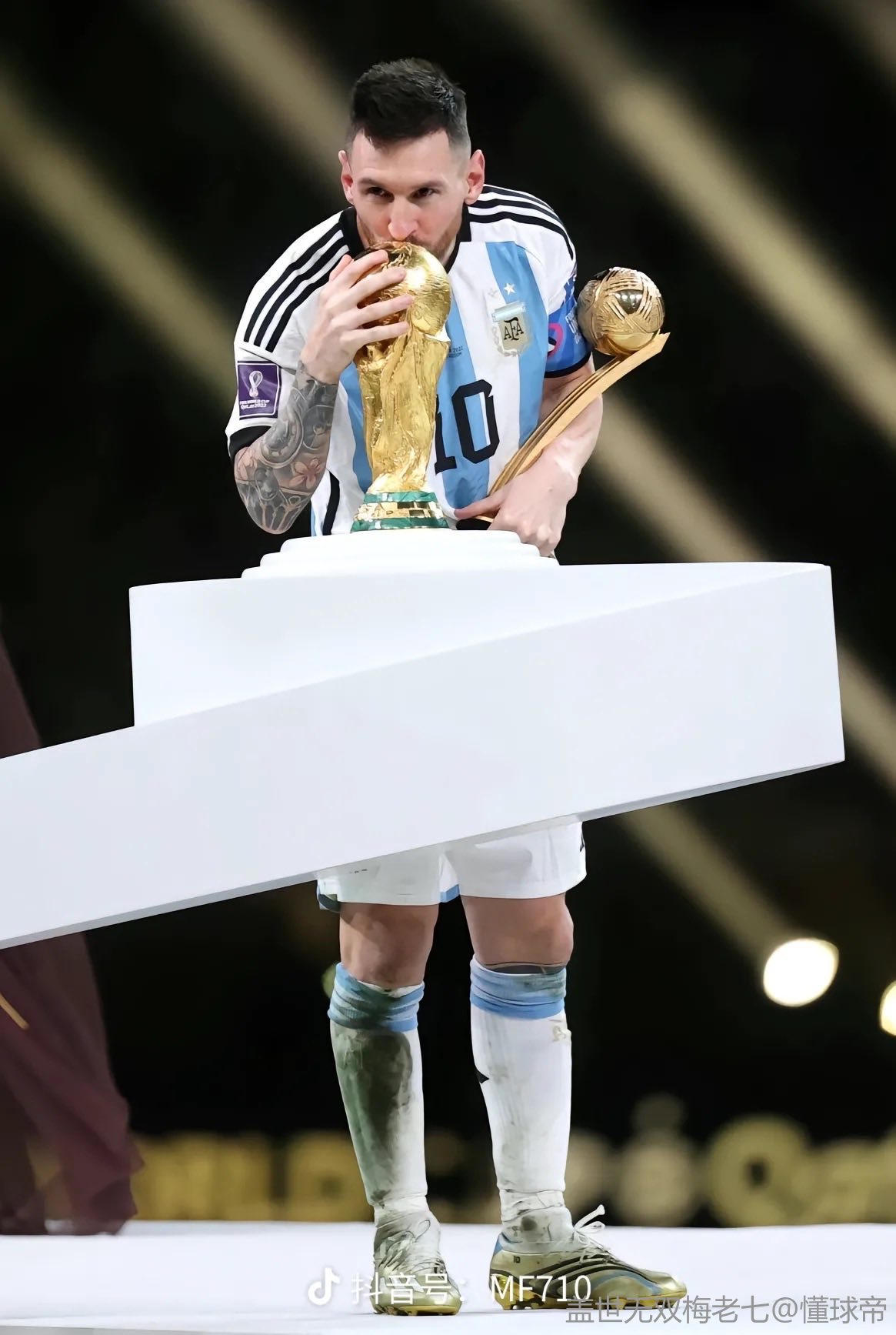 14年由我国摄影师抓拍下来的他那张凝望大力神杯的那张照片也拿了最佳奖。那一次大力神杯近在眼前,可他却无法触碰。而2022年卡塔尔世界杯这一次,他登上了最高领奖台,带着喜悦的笑容亲吻着它。所以人生的路上,你只管善良,你要的福报都在路上。