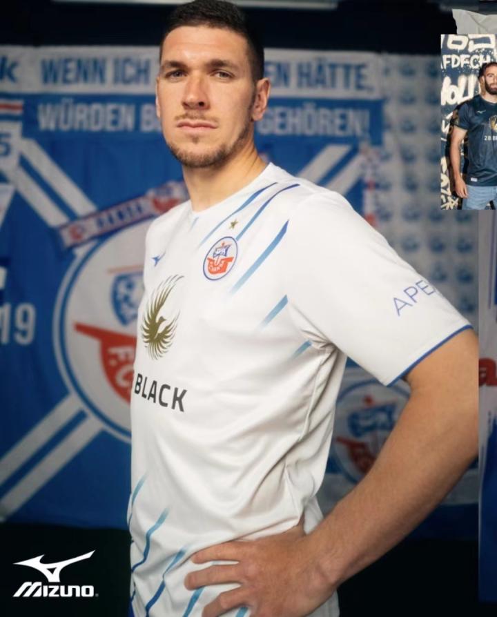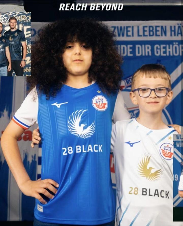 美津浓官方为罗斯托克这赛季的三套球衣拍摄宣传照片,配文“3 kits,endless opprotunities.”
