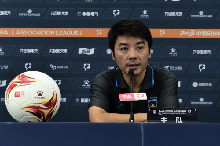 赛后新闻发布会上,南京城市主教练曹睿表示:“首先很感谢我的队员,在45分钟少一人的情况下最后拿下比赛,不论结果,我相信大家也能看到他们在场上的这种精神 ,这才是足球应该有的这种拼搏的精神,我也为他们感到骄傲,非常感谢他们!”