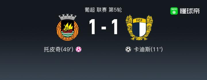 北京时间9月16日葡超 联赛 第5轮,阿维河主场对阵法马利康。法马利康卡迪斯破门,托皮奇自摆乌龙。。最终比分1-1。