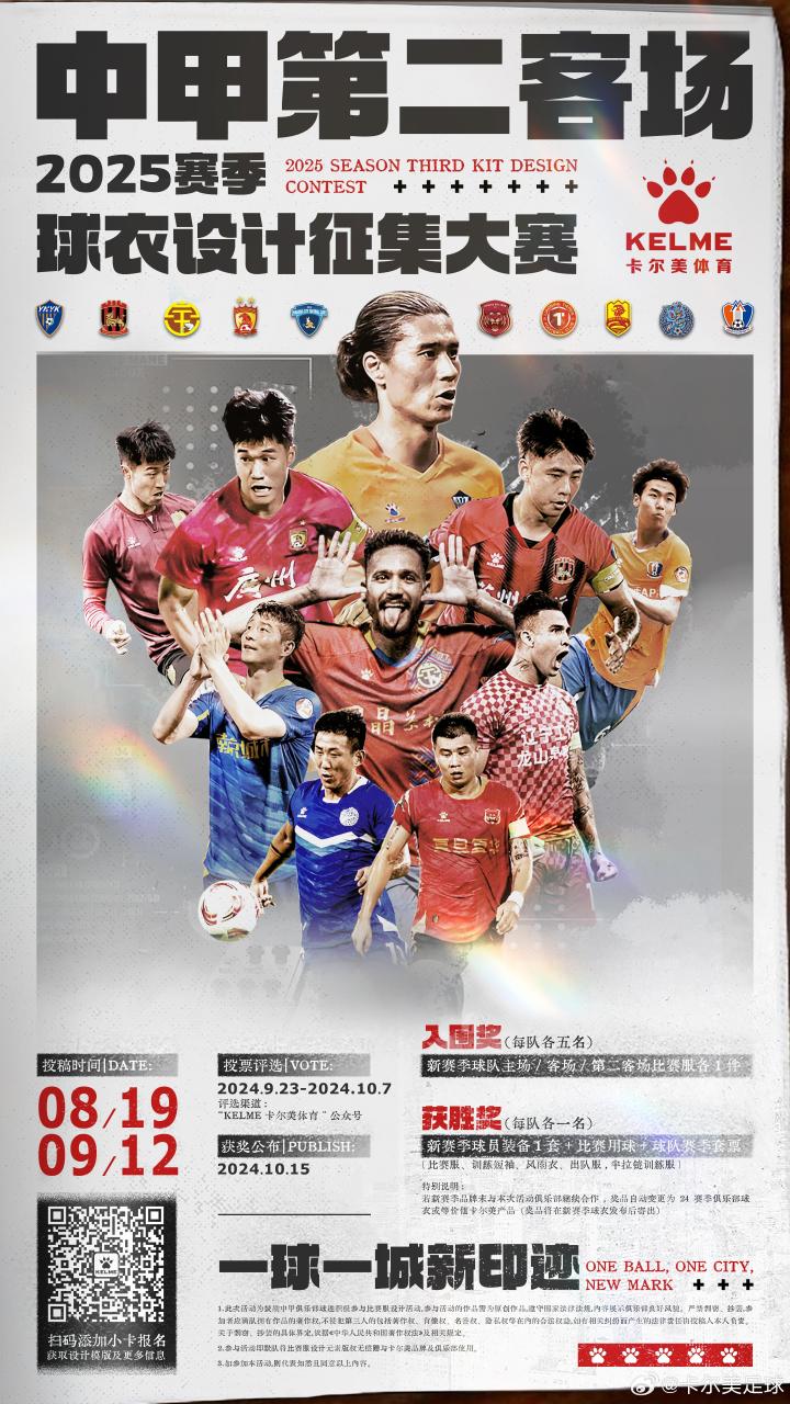 扫描下载懂球帝首页>动态> 十家中甲赞助商,卡尔美征集下赛季中甲第二客场球衣设计