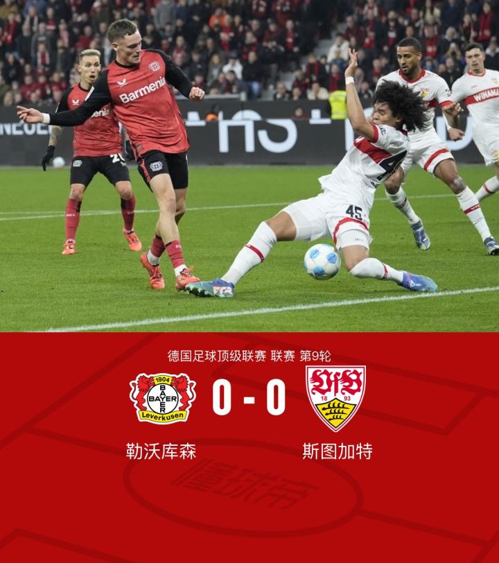 扫描下载懂球帝首页>动态> 勒沃库森0-0斯图加特,弗林蓬进球被吹,药厂两次中框