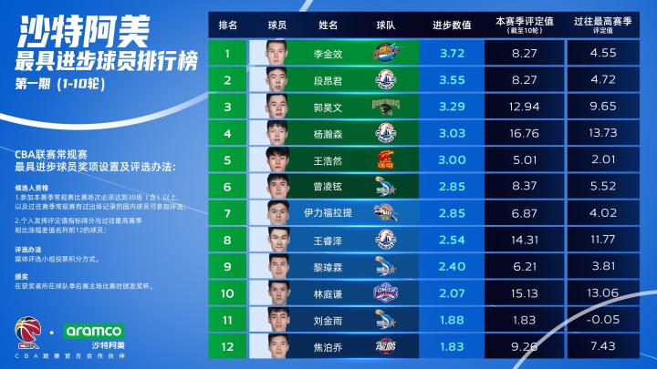 扫描下载懂球帝首页>动态> CBA最具进步球员排名:李金效居首,郭昊文第三