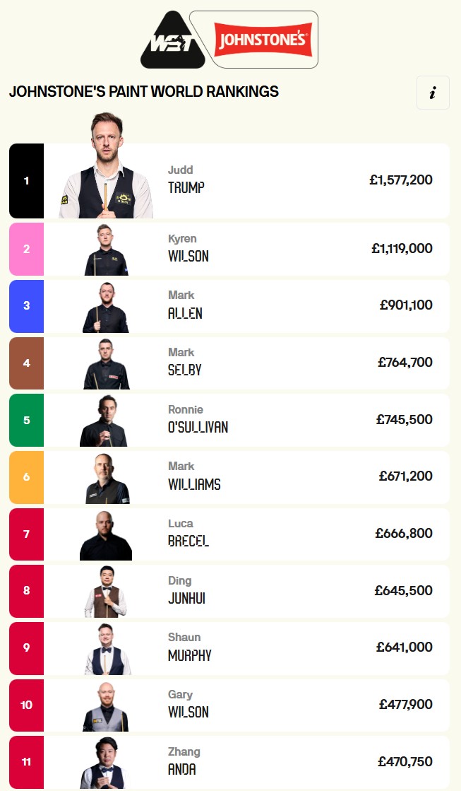 斯诺克国锦赛结束后,最新一期的斯诺克世界排名公布,丁俊晖从世界第9上升到第8的位置,单赛季排名跃升到第7位。