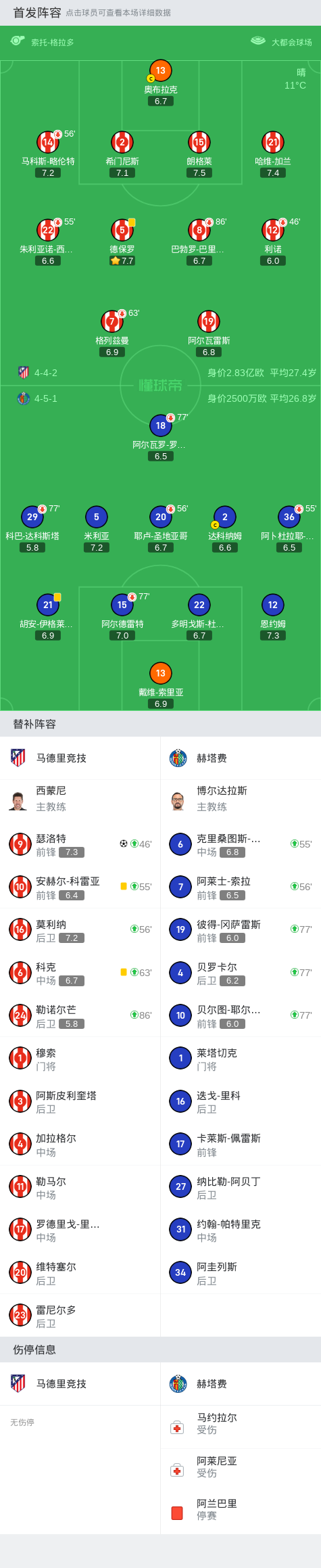 扫描下载懂球帝首页>动态> 马竞1-0赫塔费豪取11连胜,瑟洛特头球破门,莫利纳送助攻