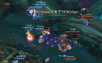 第2分钟,TES中野想抓Shanks,Tarzan反gank拿到双杀,随后上路AL打出1换2,5-1。