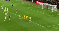 第33分钟,罗杰斯禁区倒地造点,沃特金斯点射扳平比分
