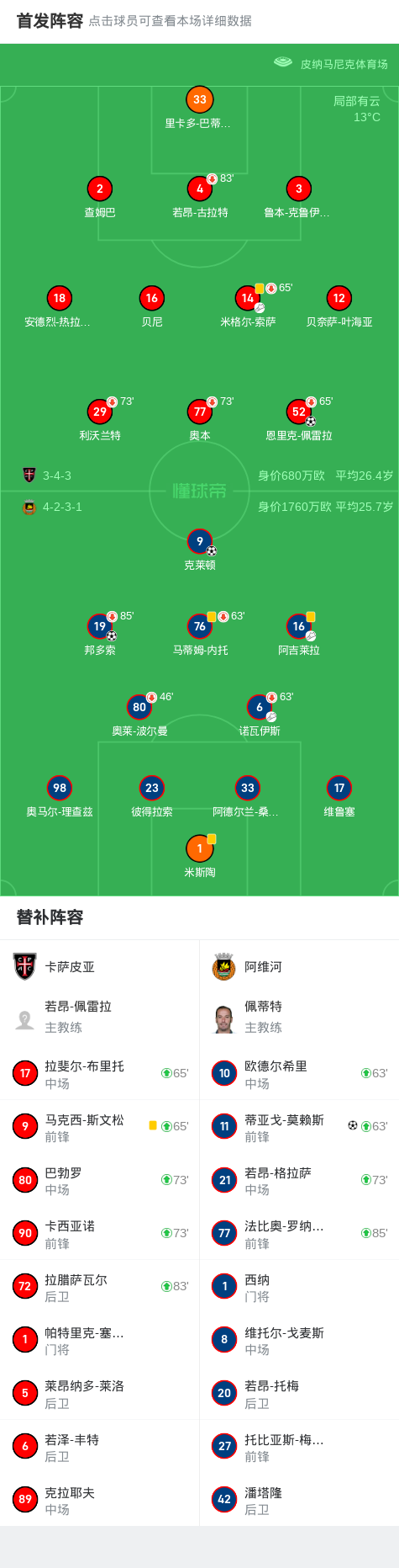 懂球帝首页>动态> 阿维河3-1卡萨皮亚,蒂亚戈-莫赖斯、克莱顿破门