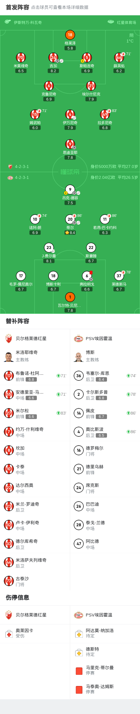 贝尔格莱德红星 2:3 PSV埃因霍温