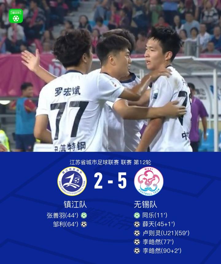 扫描下载懂球帝首页>动态> 无锡队客场5-2镇江队,同乐、薛天、卢则灵破门,李皓然双响