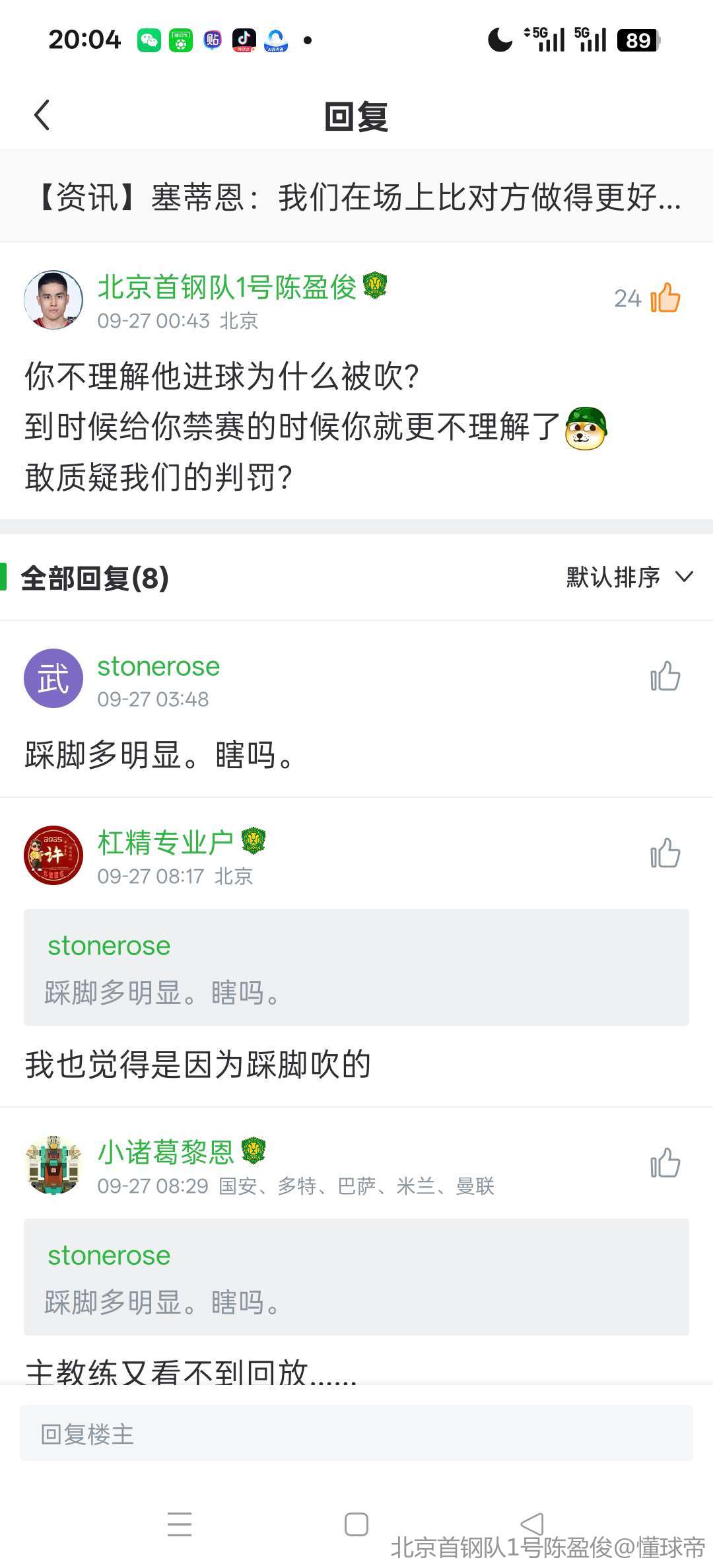 足协真TM恶心,人家带队比赛就不能议论比赛,丢了球就不能质疑,这是什么玩意们!