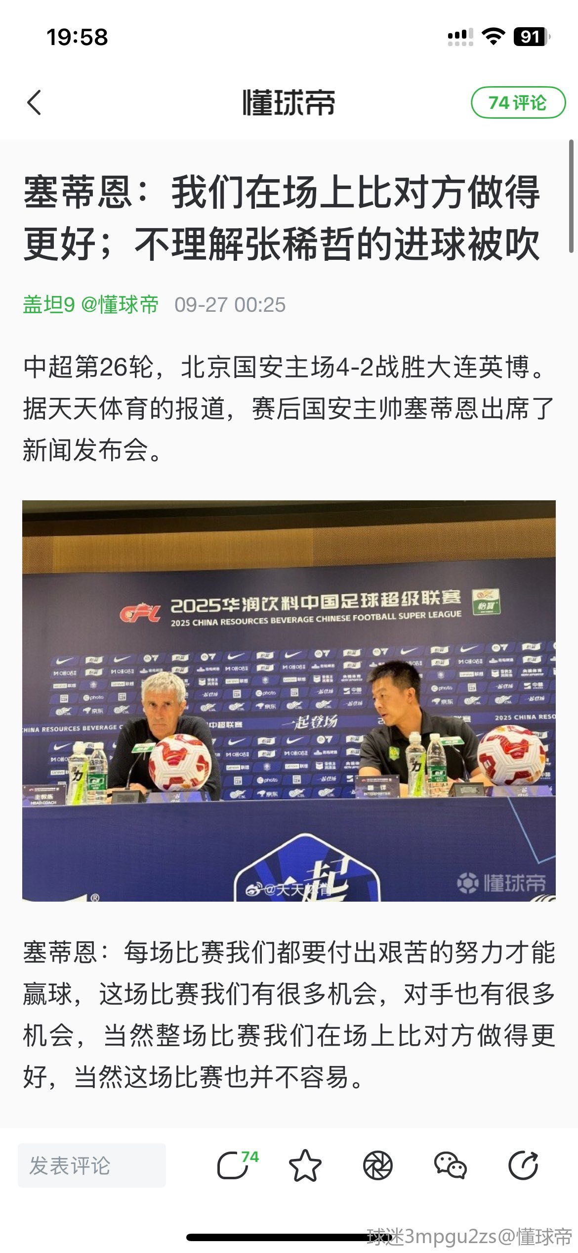 懂球帝首页>动态> 官方:国安主帅塞蒂恩因不当言论,被禁赛一场+罚款一万