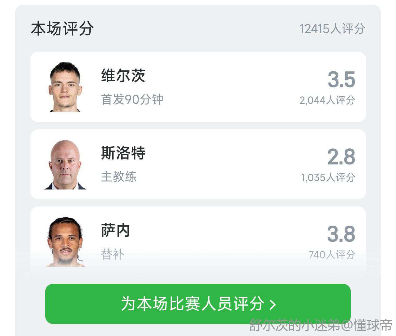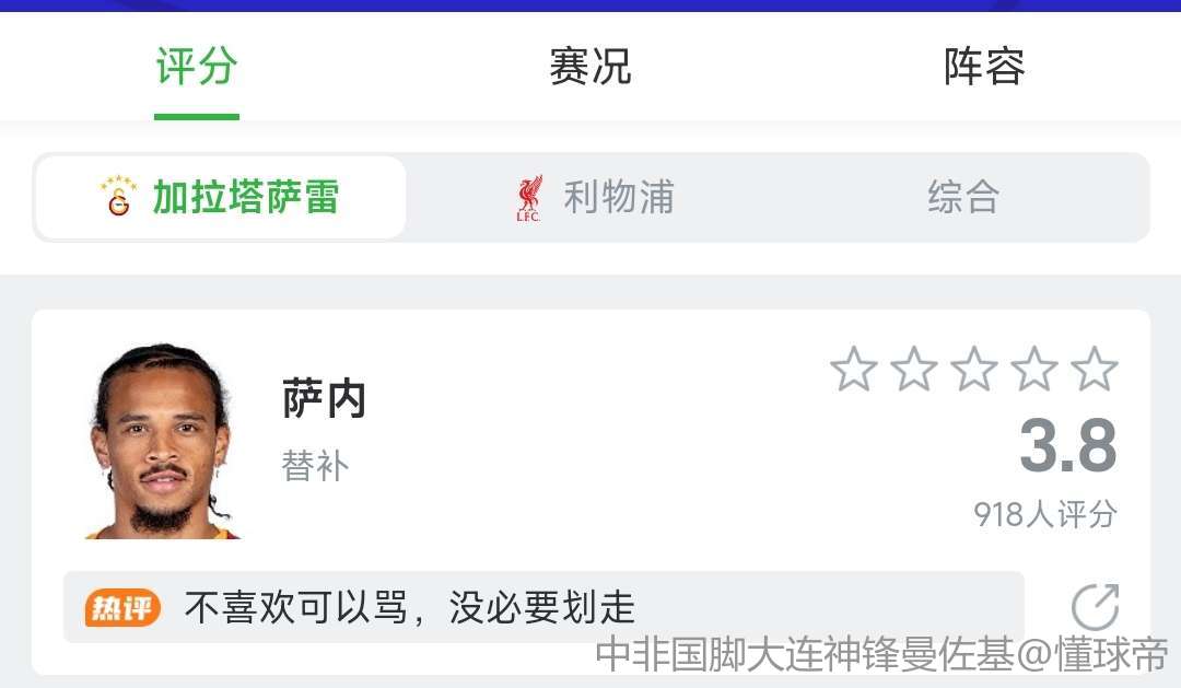 你们凭什么给哥哥打低分,你们知道哥哥在替补席的作业有多大吗?没有哥哥在替补席,就没有今天的胜利。加拉塔萨雷的球迷都哪去了?