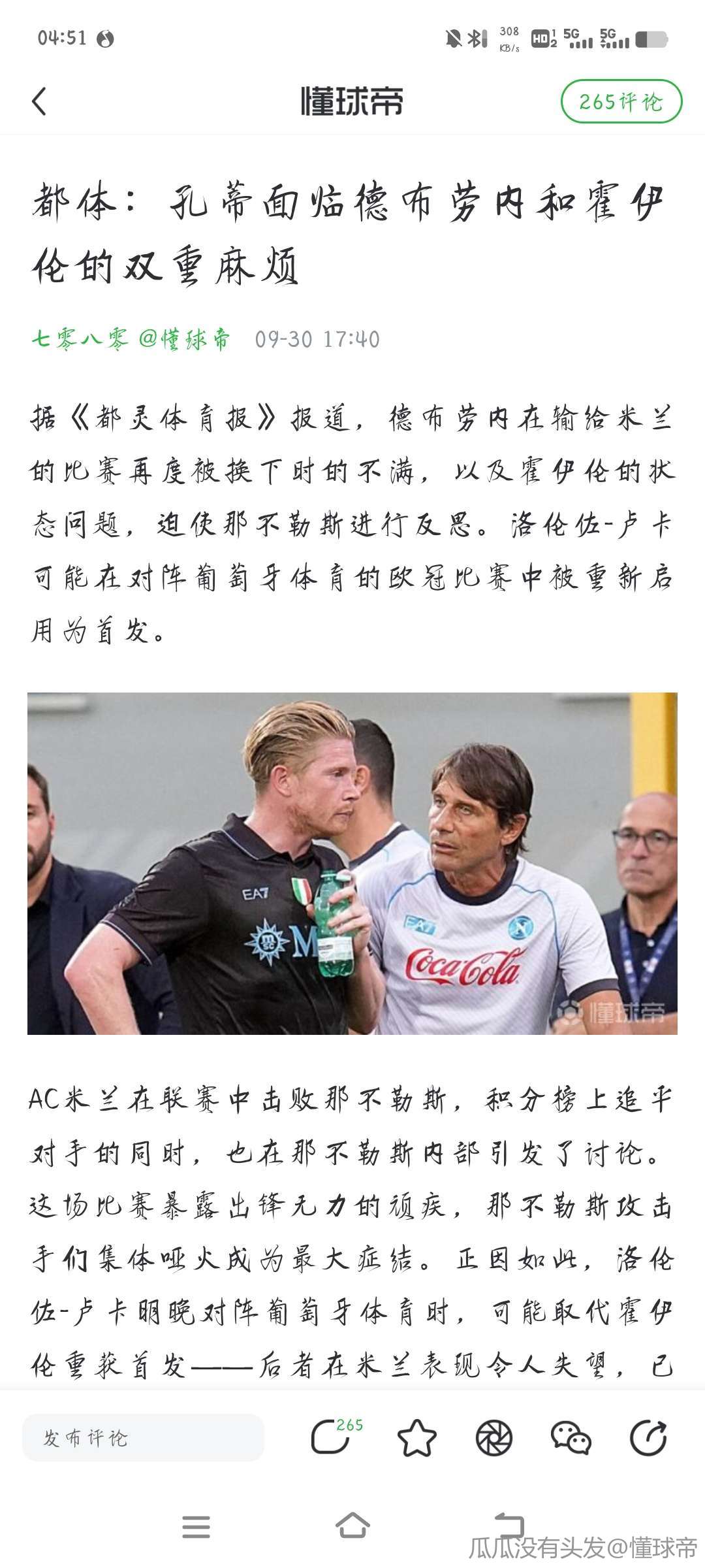 孔蒂回归433,德布劳内才能发挥最大的作用