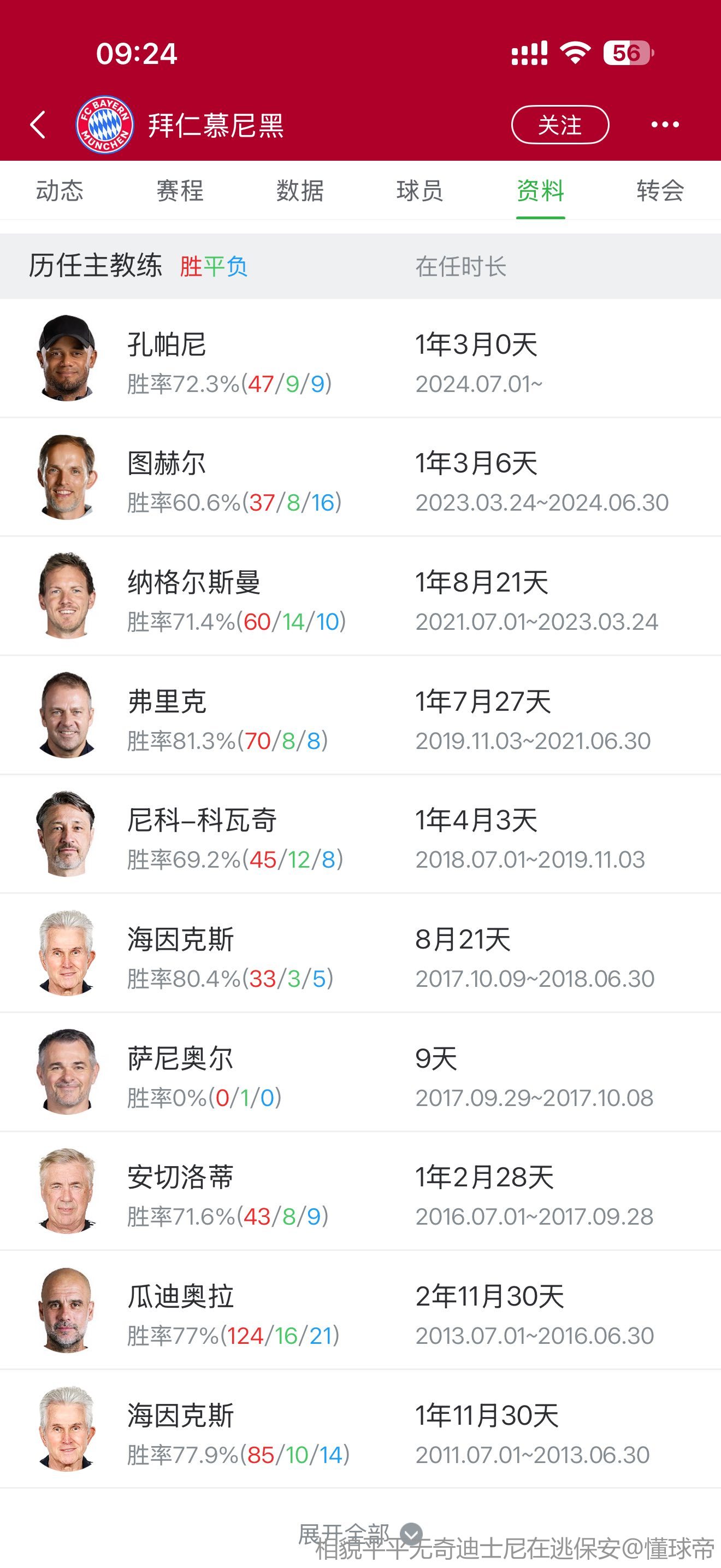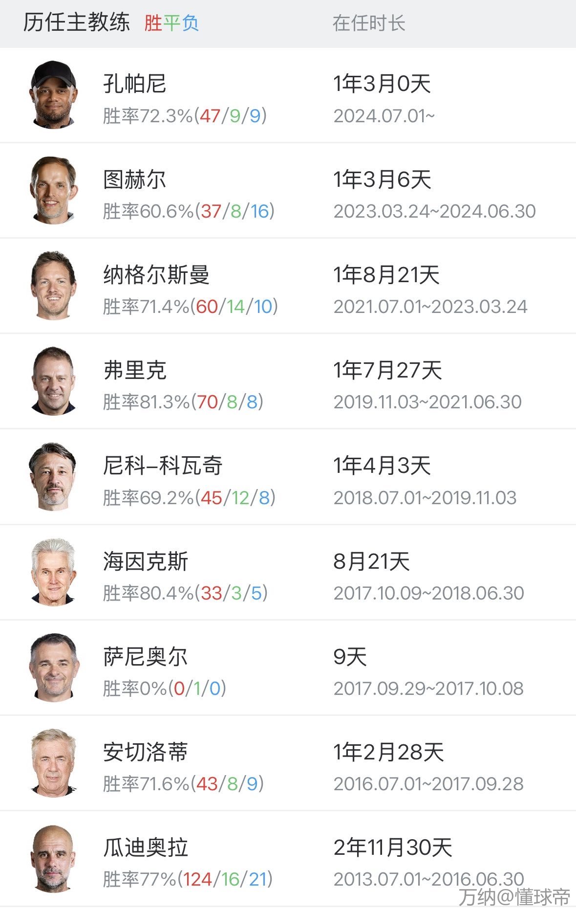 上一个在拜仁超过两年任期的教练要追溯到十年前的瓜迪奥拉 希望老孔能稳住接着进化吧