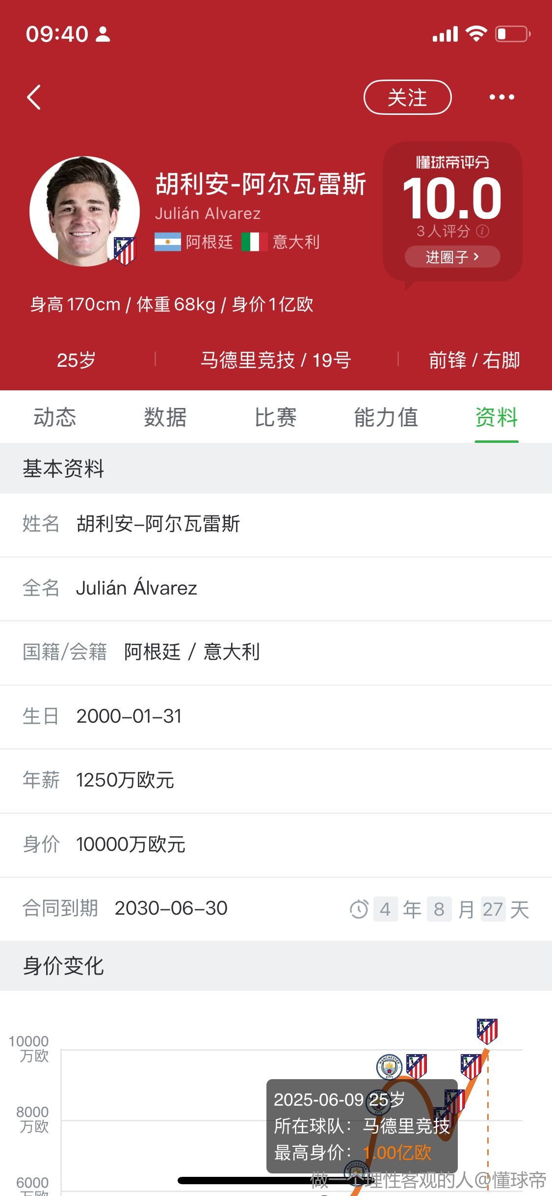 马竞中场最高薪是加拉格尔税前900w欧元;