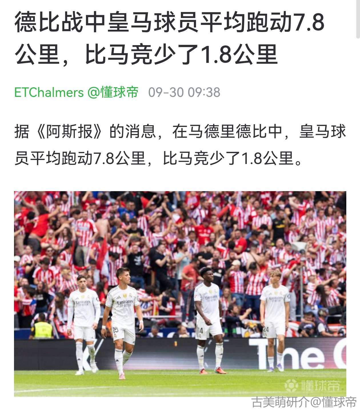 皇马全队好好来学一下吧,上赛季好几场焦点战跑动量都没有对手多