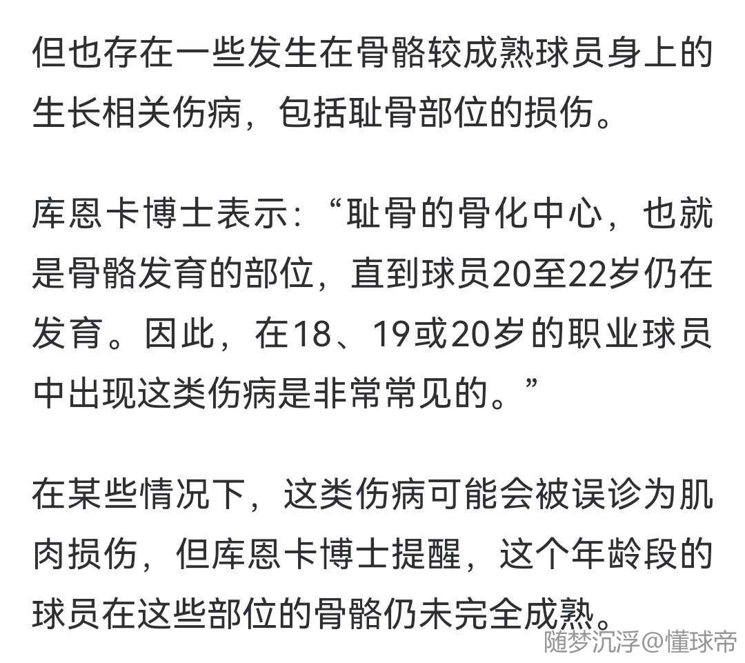 但也存在一些发生在骨骼较成熟球员身上的生长相关伤病,包括耻骨部位的损伤。