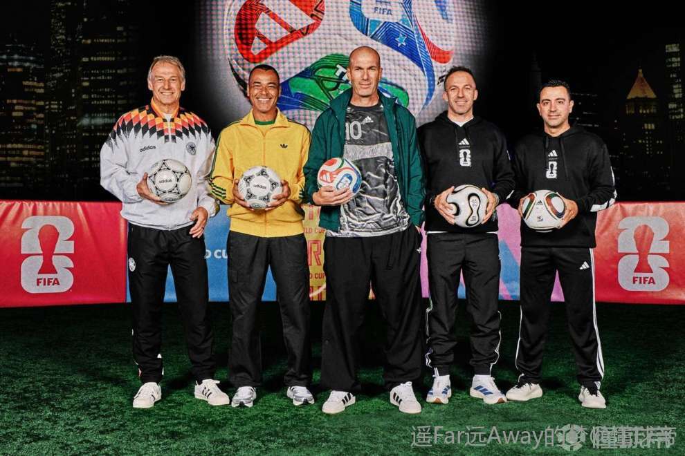 哈维、皮耶罗、克林斯曼、卡福都拿着自己当年夺冠的用球,只有齐达内拿着三重浪,难道说明年的世界杯冠军花落法兰西