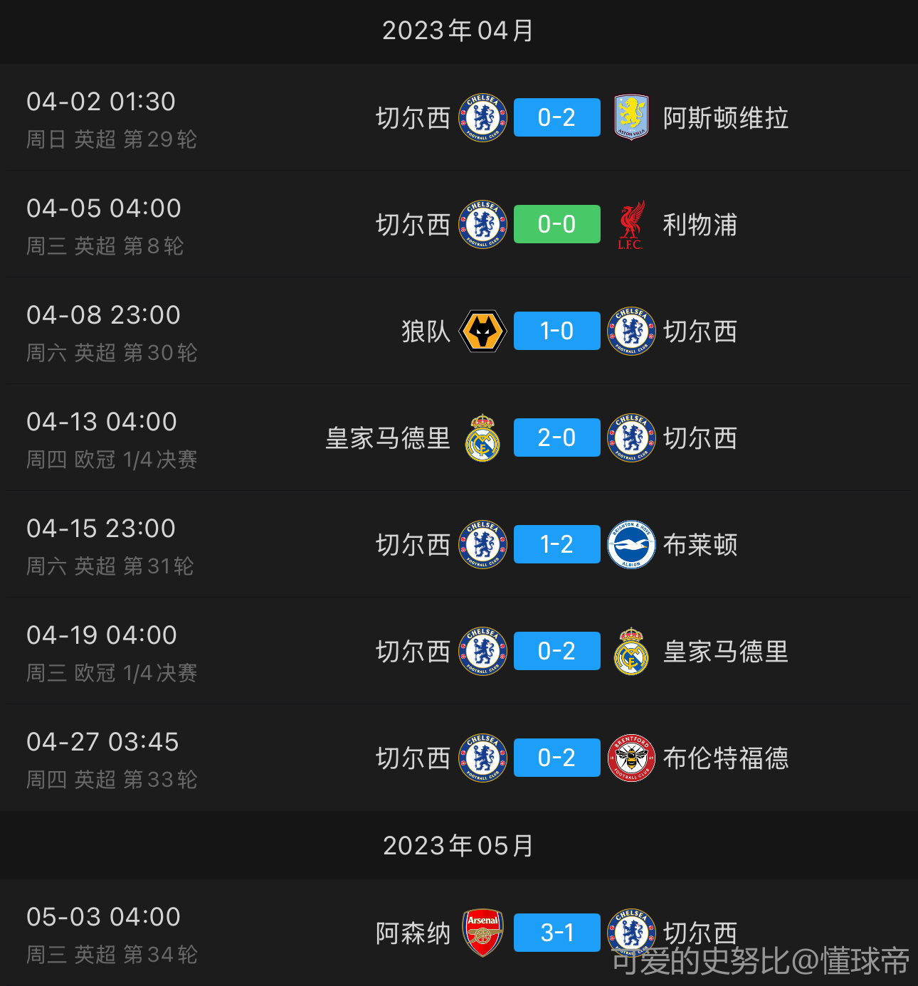 2023年4月1日,切尔西0-2维拉,主帅波特