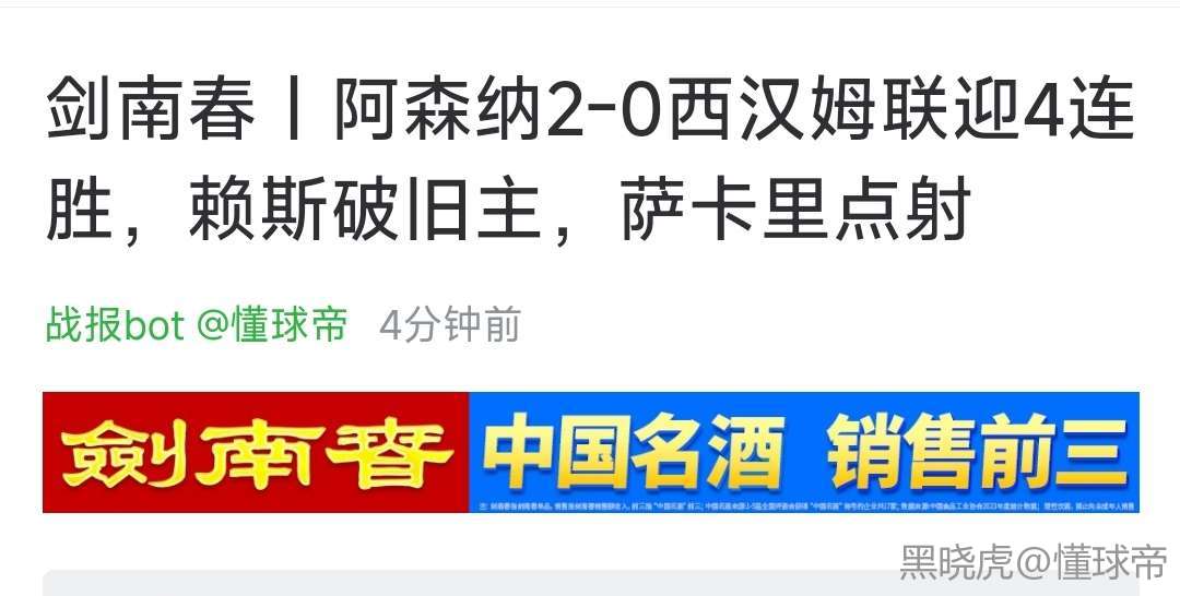 懂球帝首页>动态> 剑南春|阿森纳2-0西汉姆联迎4连胜,赖斯破旧主,萨卡点射