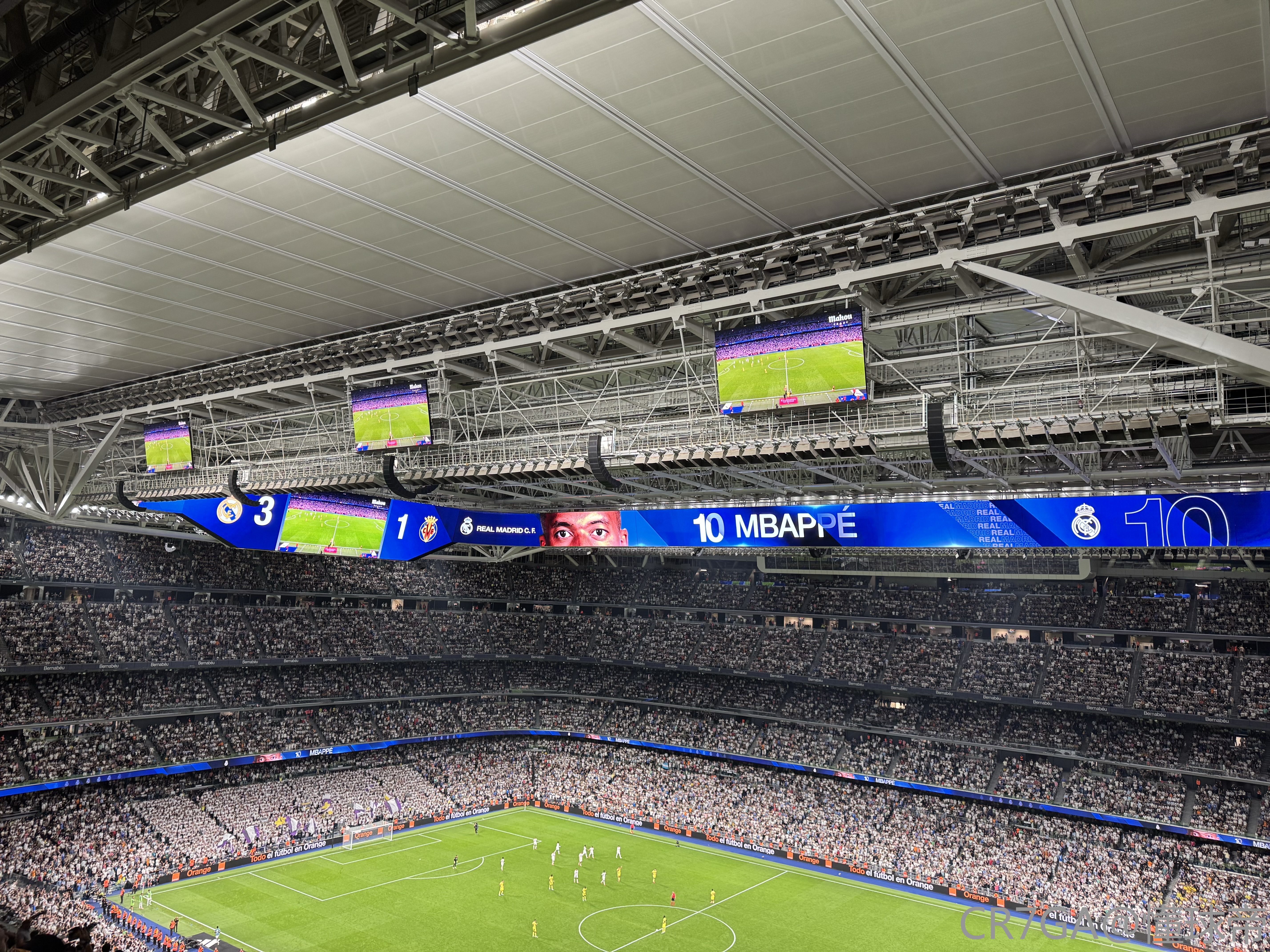 第一次现场看,现场氛围是真的好,后边有个西班牙大叔应该是小熊粉,每次维尼拿球都会很大声地喊Vinicius(当然,姆巴佩李哥他们造威胁的时候也会喊Kylian和Rodrygo,不过没小熊喊的多),小熊进两球造一红,估计大叔是看爽了哈哈哈哈