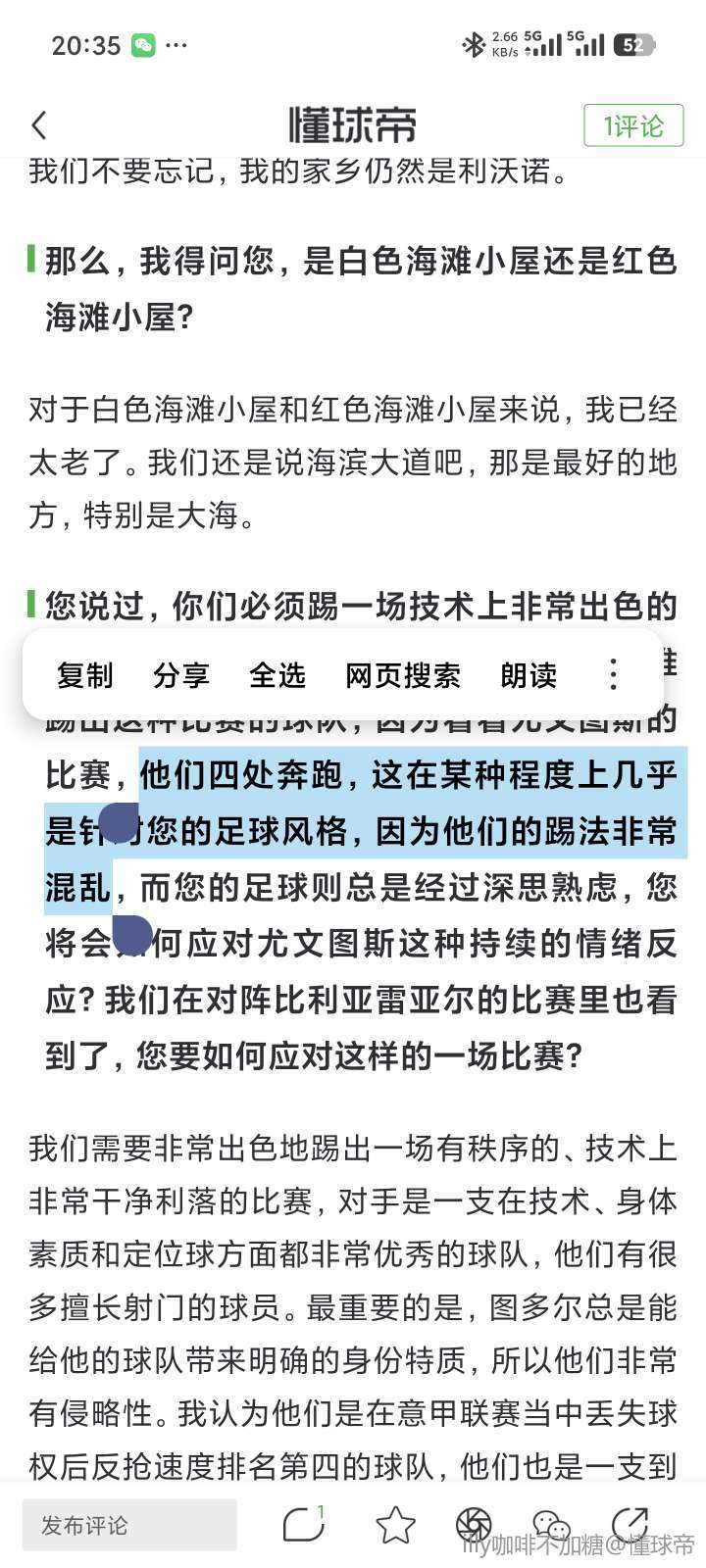 我不知道为什么,但我儿子刚好从都灵给我打电话过来(阿莱格里笑着挂断了电话并将手机扔到了一边)。
