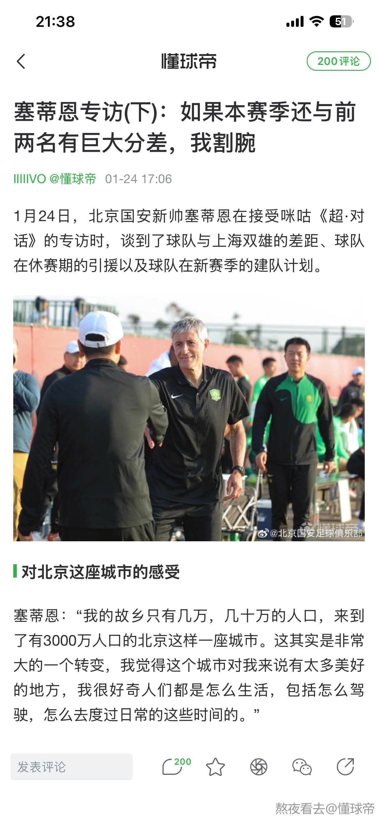 塞蒂恩终于可以解脱了,来到这么远的地方,一个足球极度落后和不专业的地方,一家管理业余,资金窘迫,球员能力无法启齿的地方,在这样的地方工作,谁来谁懵圈。感谢付出未来祝好。