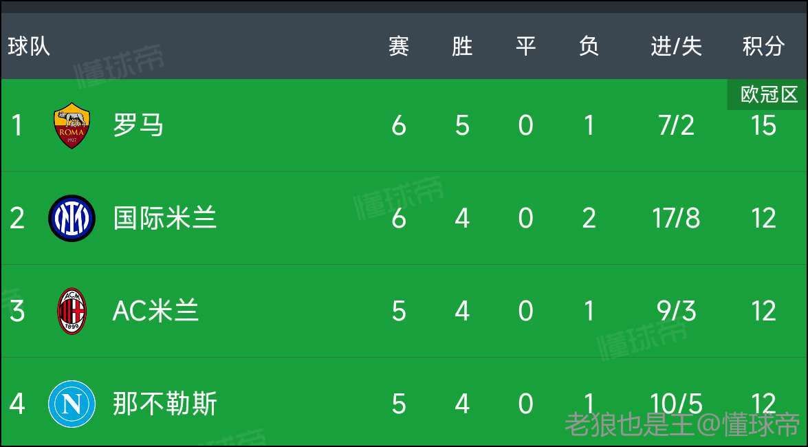 罗马此刻有两个第一!一个是暂列意甲积分榜榜首,久违了!一个是欧洲五大联赛失球最少的球队!值得开心!值得我们期待!继续!