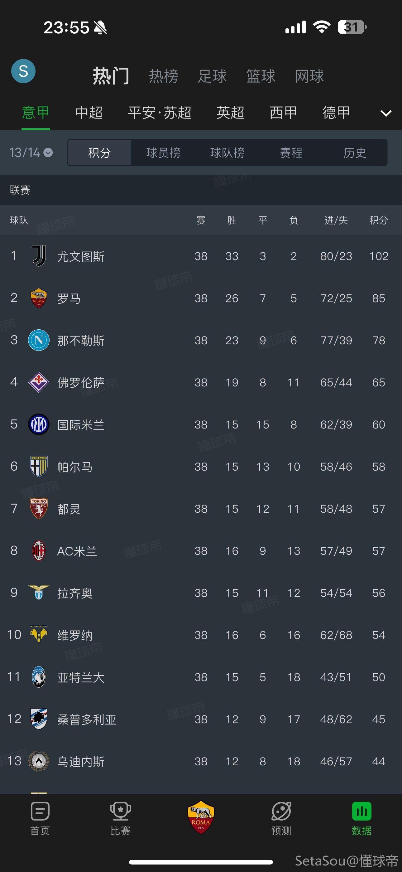 我宣布:本赛季意甲即刻结束🔚按此刻积分榜,收摊收摊!