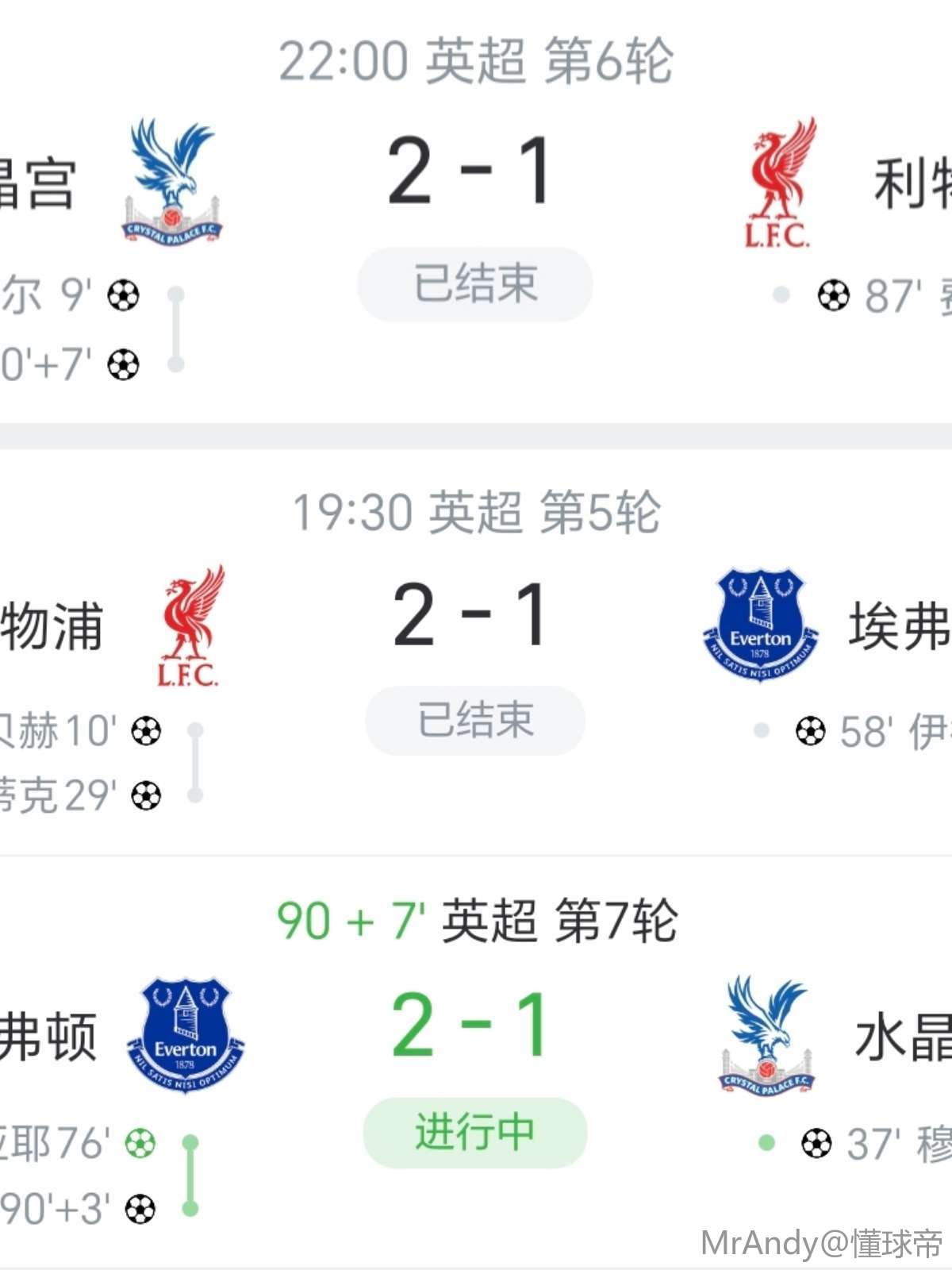 10-05 23:00埃弗顿 vs 水晶宫 比赛动态