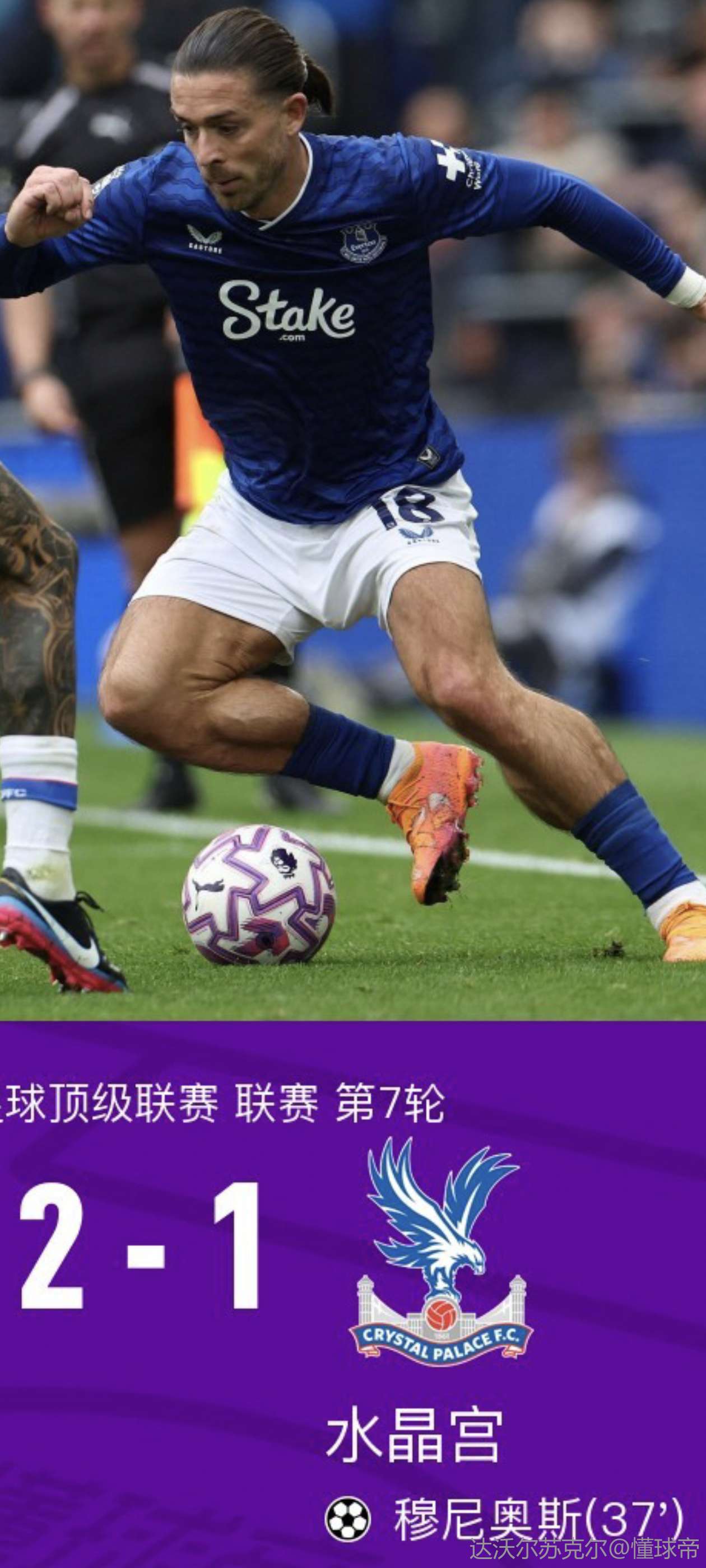 懂球帝首页>动态> 埃弗顿2-1逆转送水晶宫赛季首败,格拉利什补时绝杀