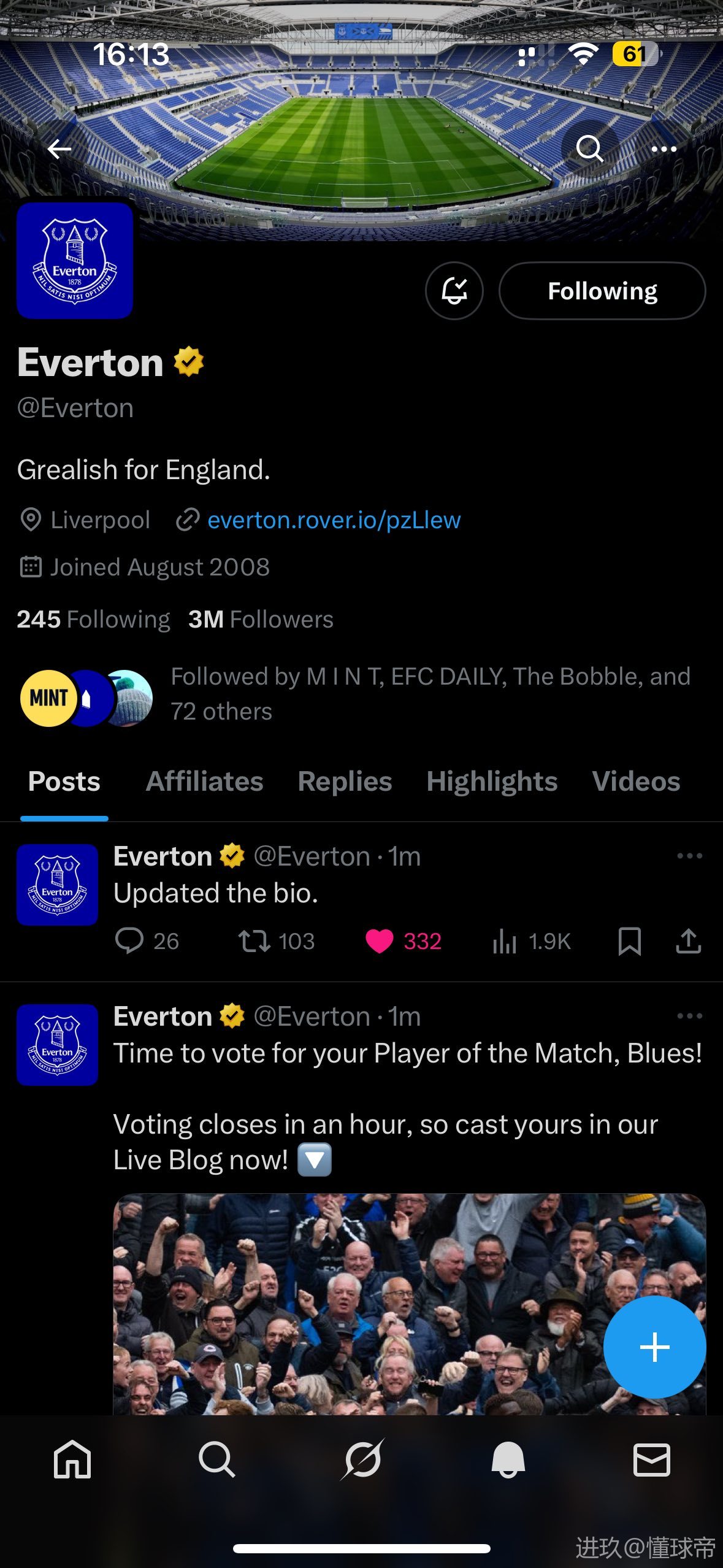 你顿官推把简介改成了Grealish for England