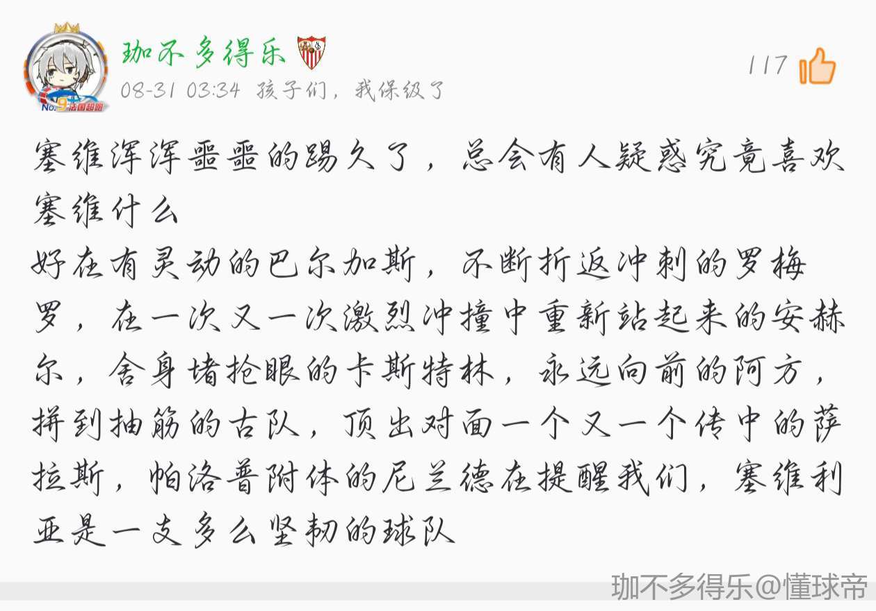 已经十年了啊,十年前还看得直播,那场塞维主场2-0次回合被翻盘的耻辱也看的直播,今天终于圆梦了