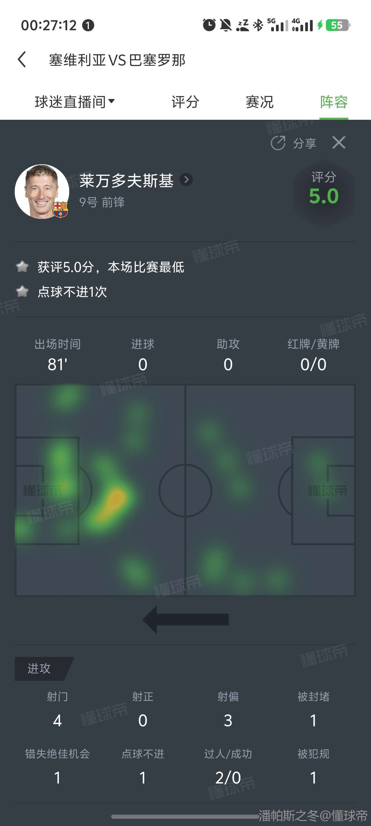 莱万宽容度还是高的 但这种点球不进太伤士气了