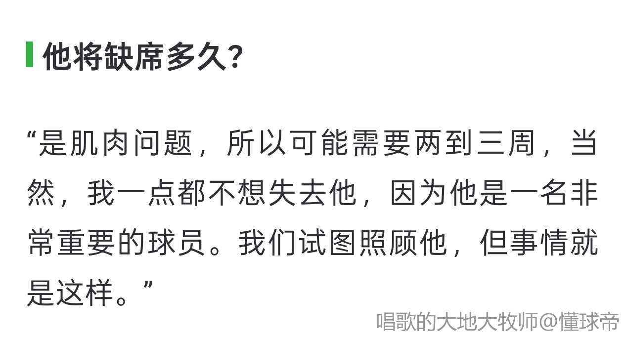 瓜帅:罗德里是肌肉问题将伤缺2-3周,我也希望他能三天一赛