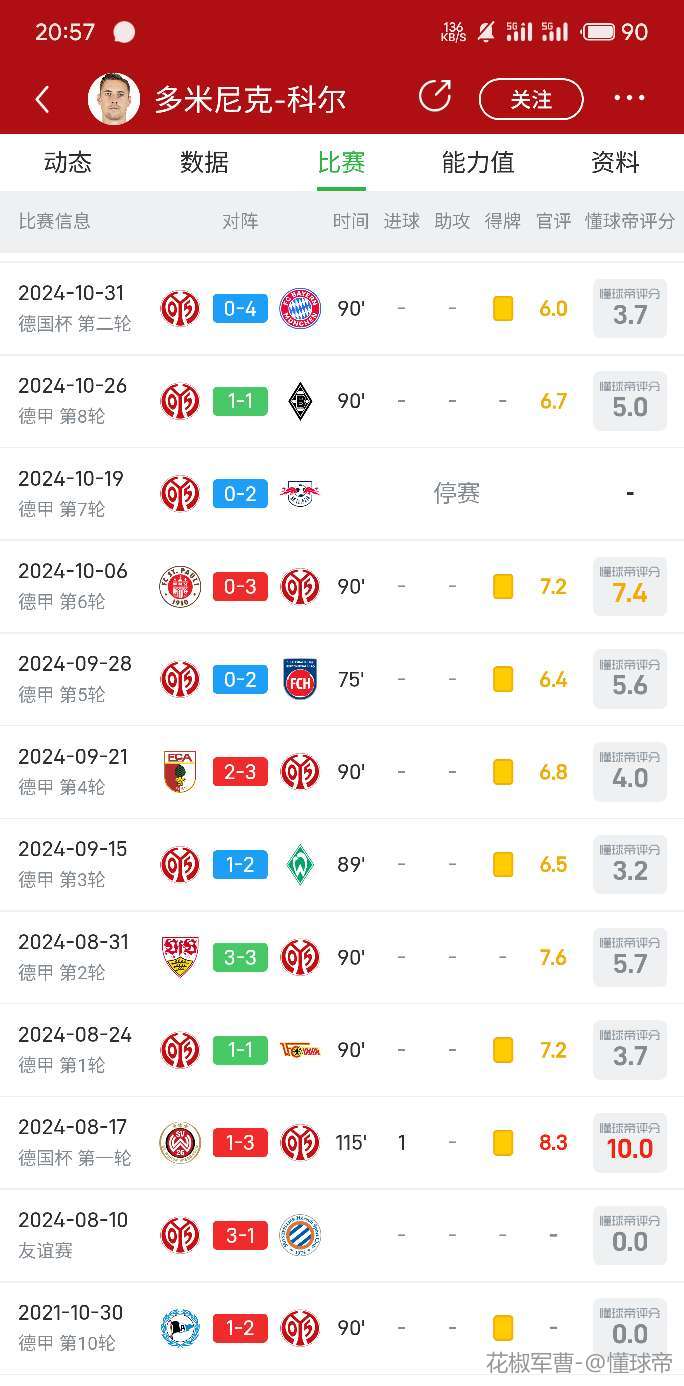 懂球帝首页>动态> 黄卡大师,美因茨后卫科尔是德甲历史上唯二染黄破百的球员