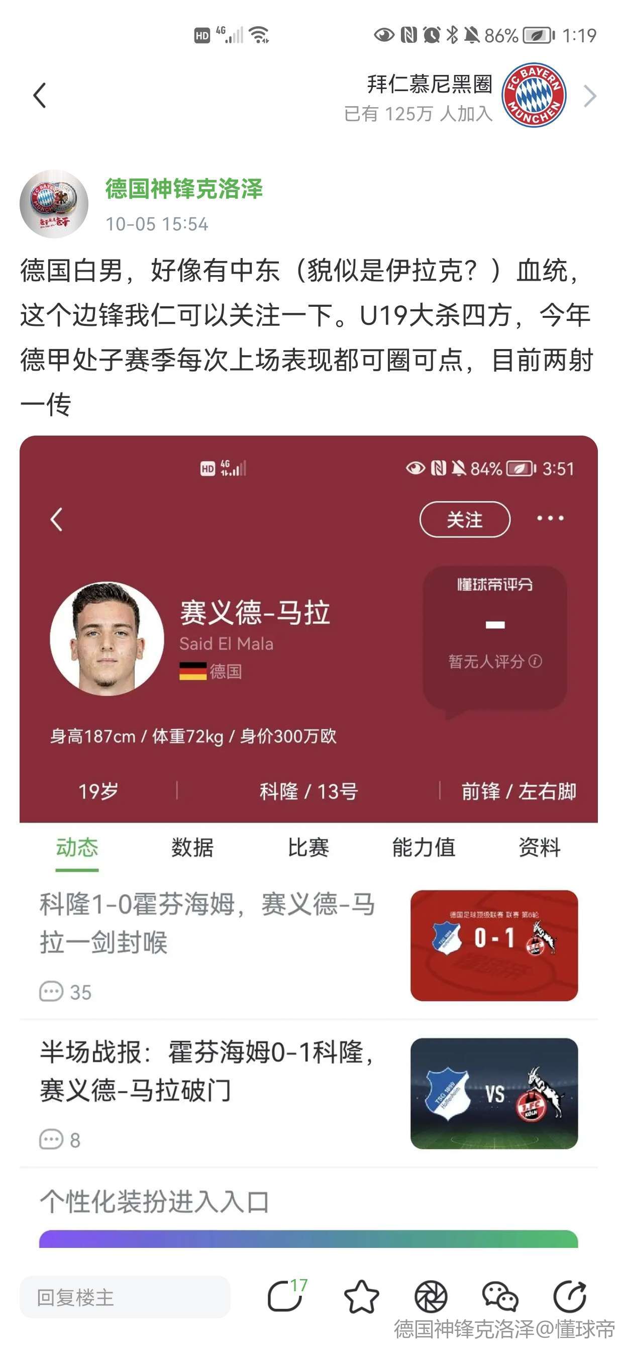 去年U19就完全高一档的存在,今年科隆以替补居多,上场拿球就有威胁,上轮第一次首发又进球。拜仁看上不足为奇,只怕竞争也很激烈
