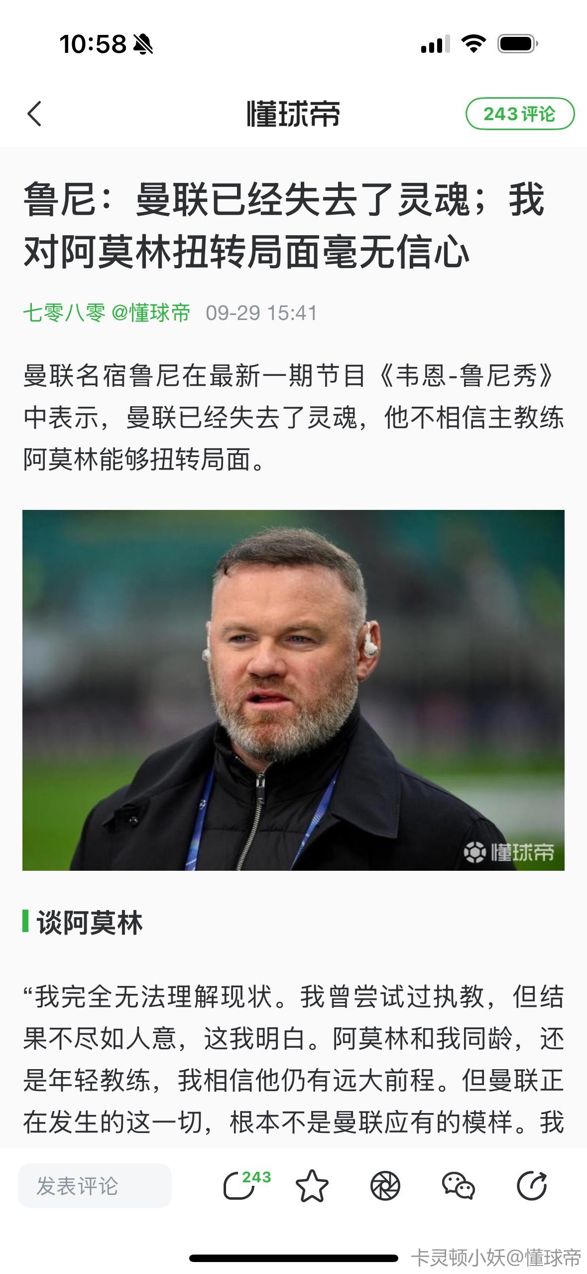懂球帝首页>动态> 鲁尼:阿莫林是位有能力的年轻教练,希望他能扭转局面