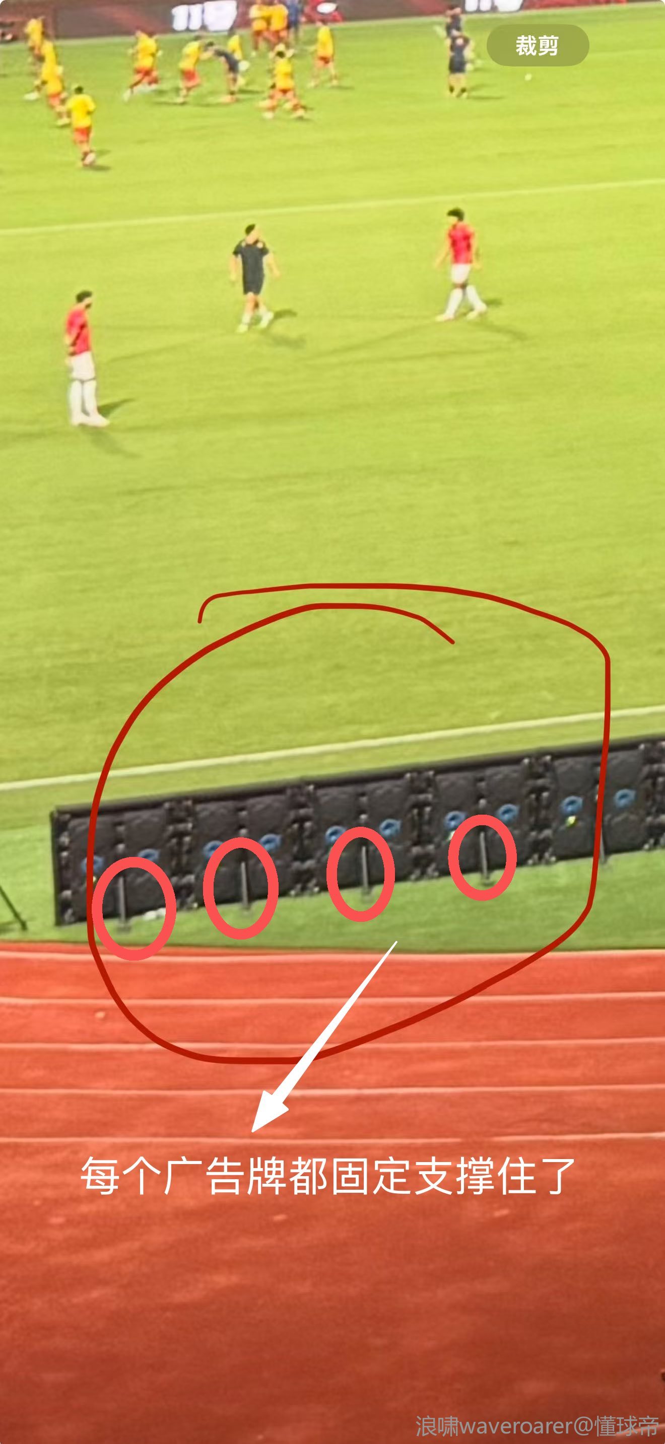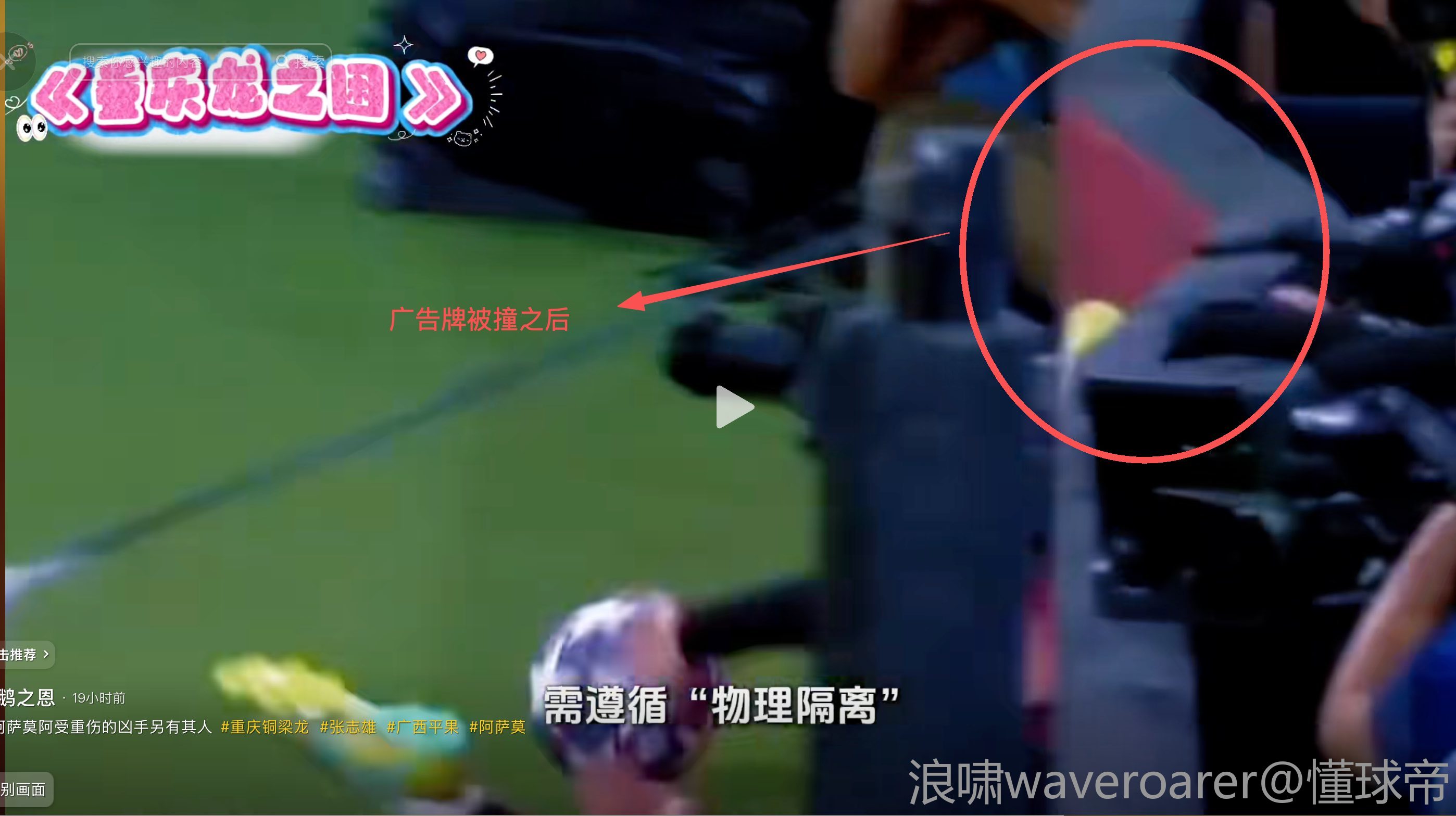 而事发赛场的每个广告牌后面被棍子支撑住,所以阿萨莫阿撞上后,整个广告牌几乎纹丝不动,如同一堵墙一般。