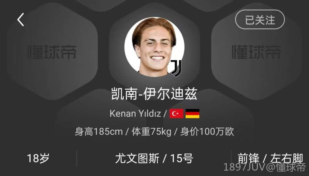 懂球帝首页>动态> 暴涨2500万欧,伊尔迪兹身价涨至7500万欧,跻身意甲前三
