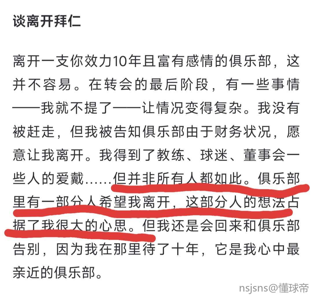 我害怕被遗忘吗?恰恰相反。忘了我吧!少点关注是好事。如果我离开拜仁去沙特,部分原因是因为那里更稳定,更平静……比我想象的要难。我知道在国家队,我的优先级会降低。但我想如果我留在拜仁,我打不上太多比赛,情况也会一样。