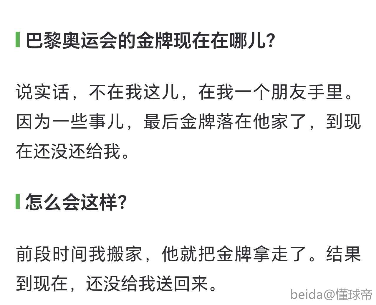 说实话,不在我这儿,在我一个朋友手里。因为一些事儿,最后金牌落在他家了,到现在还没还给我。