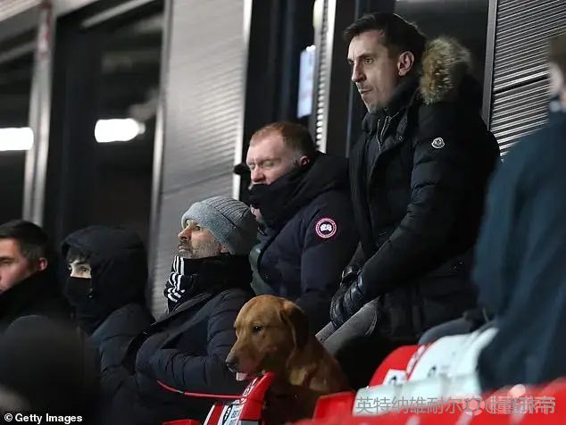 球迷们在老特拉福德附近的酒店外举着横幅,上面写着“加里-内维尔,叛徒垃圾,乌龙球,内维尔”,其他人则被拍到将英国国旗绑在附近的灯柱上,此前内维尔透露,他已让人从其造价4亿英镑的建筑工地拆除一面国旗。
