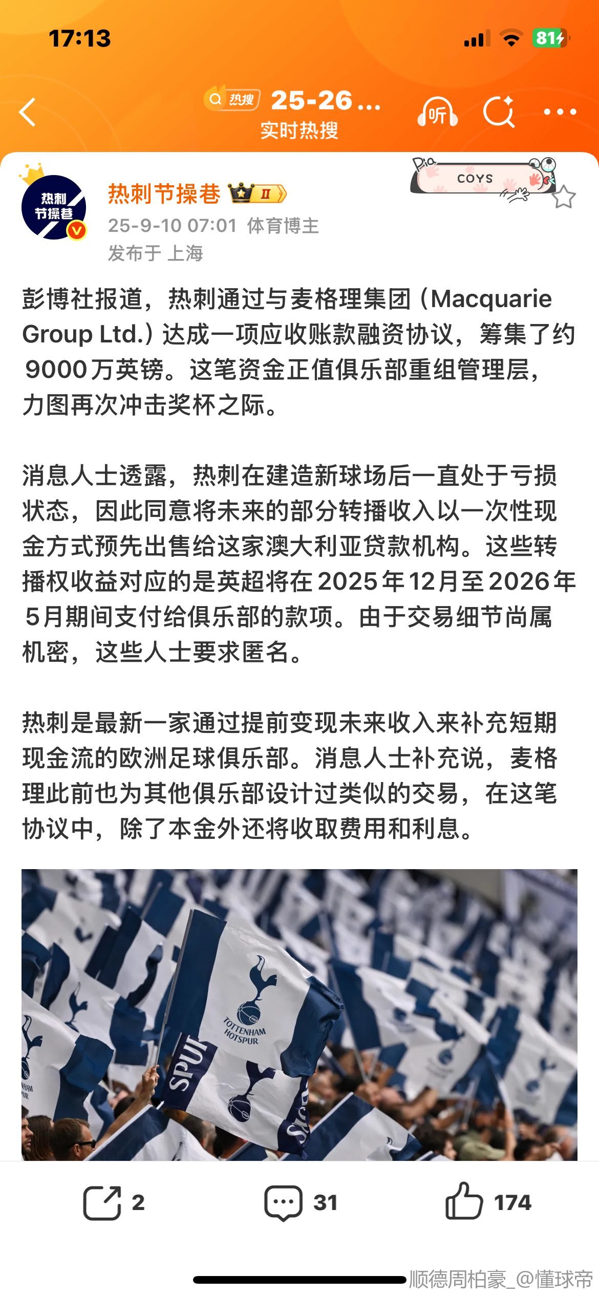 冷知识:enic此前已通过出售转播权筹集了一亿英镑 所以热刺在冬窗理论上拥有两亿英镑