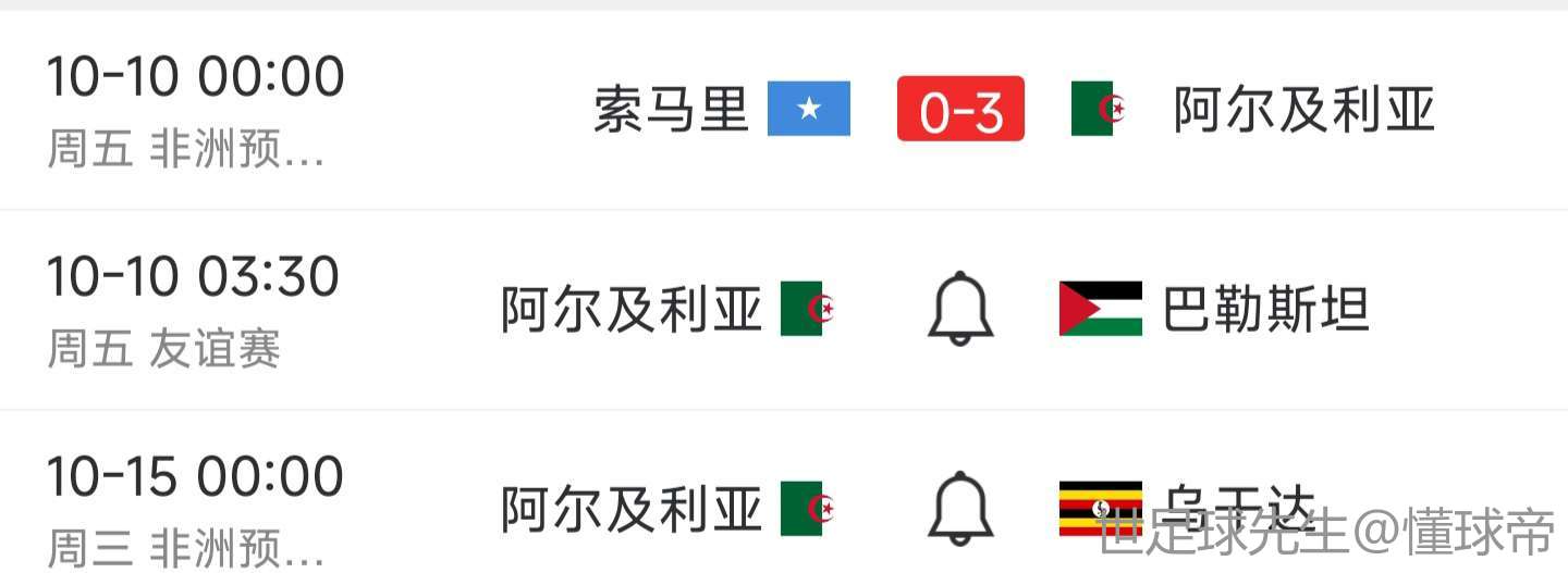 阿尔及利亚在2026年世界杯非洲区预选赛第9轮客场3-0击败索马里,从而提前晋级世界杯决赛圈。