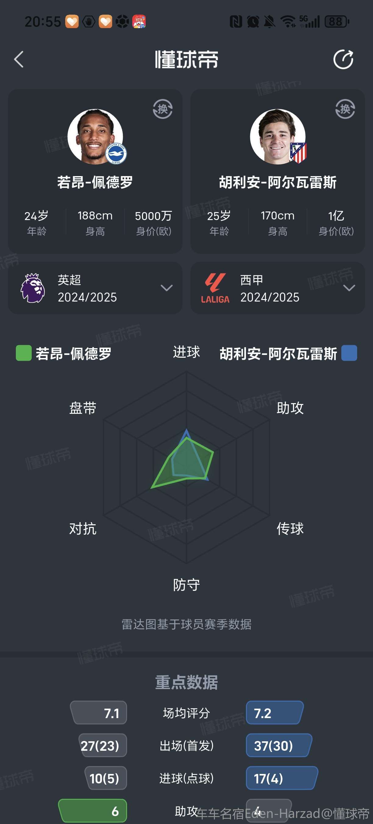 给大伙看看巴西阿根廷中锋上赛季对比,说实话我都没想到巴西这俩五维快给小蜘蛛和塔罗包圆了,这支巴西好好磨合世界杯肯定走的比上届远